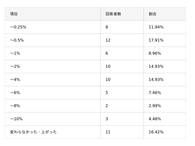 – 借り換え前と比べてどれくらい金利が下がったのかを調査した。「0.25%~0.5%下がった」との回答が最も多く、約18%。一方で「金利が変わらなかった・上がった」と回答した方も約16%存在した。