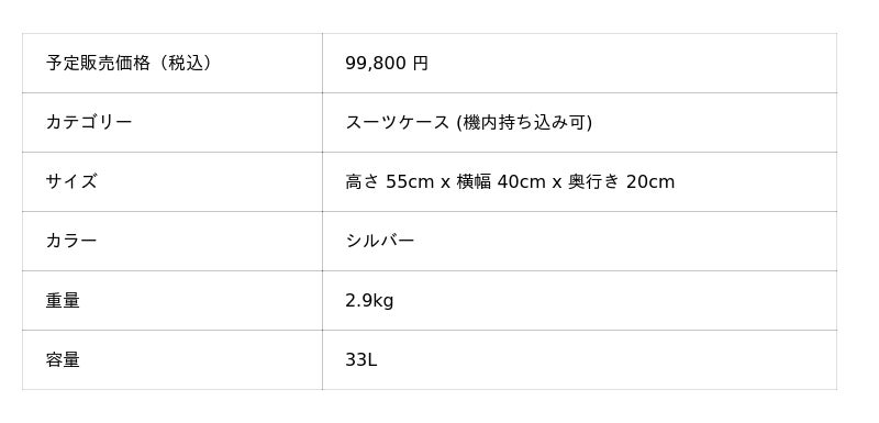 「Magne Suitcase」は、ボディ全面にマグネシウム合金を採用した世界初のスーツケースであり、重量わずか2.9kgという世界最軽量の金属スーツケースです。従来はトレードオフとされていた「軽さ」と「耐久性」を、高精度な素材加工技術と設計により両立。移動時の負担を軽減しながら、壊れにくく長く使える構造を実現しています。外装には上品なシルバーを採用し、ミニマルな佇まいと所有感を両立。内部は⽚開き仕様で、必要十分な収納性を保ちながら軽量化を図っています。キャスターには、柔軟性と耐久性に優れたエラストマー素材を採用。空港やホテルなど静かなフロアでも、ほとんど音を立てずにスムーズに動きます。