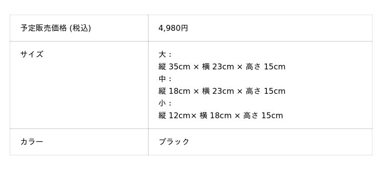 大・中・小の 3 サイズで、スーツケースの⽚開き構造にぴったり収まる専用ポーチ。収納効率を高め、旅の荷造りをスマートにします。