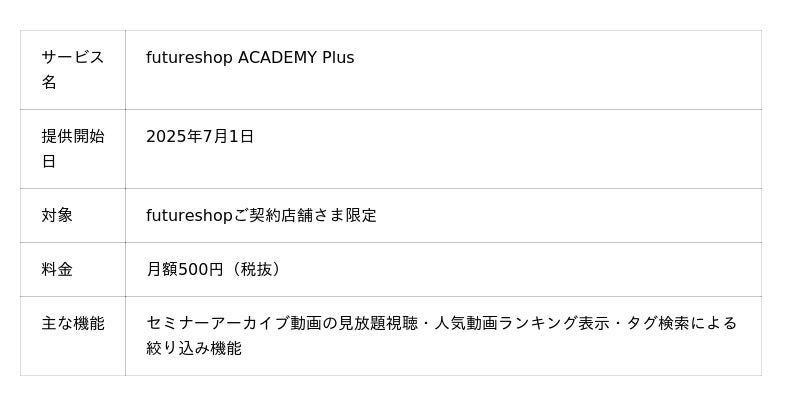 「futureshop ACADEMY Plus」サービス概要