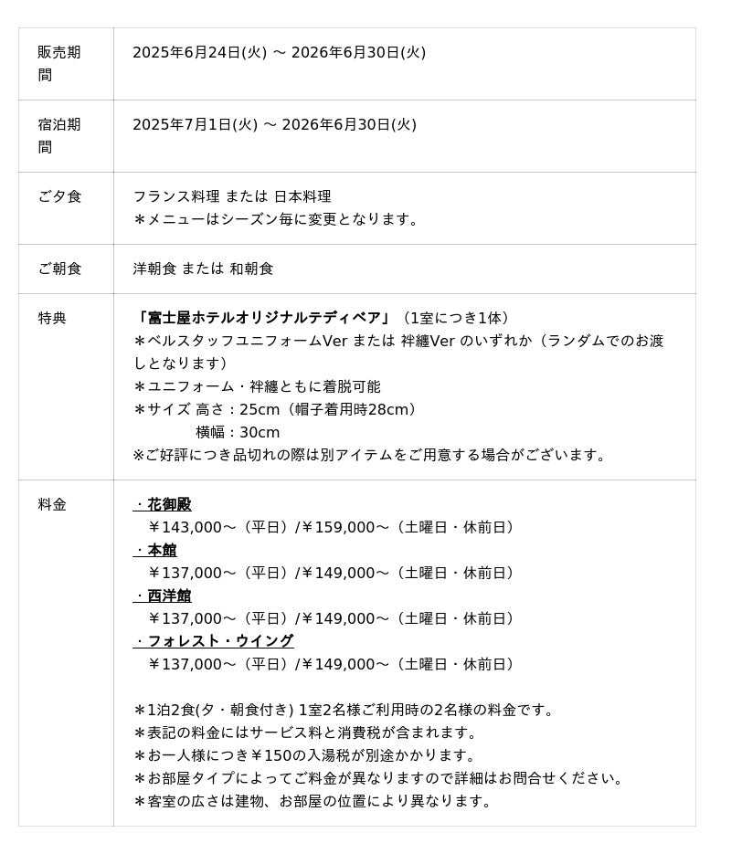 さらに、記念の証として、復刻版 富士屋ホテルオリジナルテディベアを特典としてご用意。
