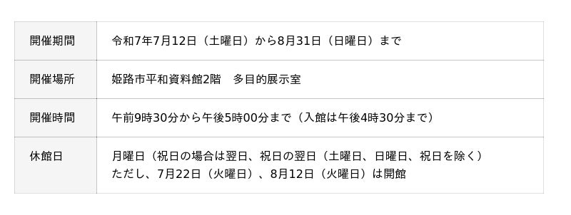 昭和60年3月6日の「非核平和都市宣言」以来、その趣旨を広く市民にアピールするとともに、非核平和について考える機会を提供するため、昭和61年度から「非核平和展」を開催。令和7年度も引き続き開催します。