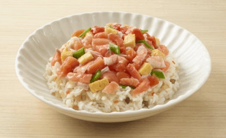 「パパっと簡単海鮮ばらちらし」は、「5種の具材」と「3種の野菜入り合わせ酢」が入っています。5種の具材はサーモン、たまご、かに風味かまぼこ、クロミル貝、えびで、3種の野菜入り合わせ酢にはたけのこ、しいたけ、にんじんが入っています。炊いた1合のご飯に具材入りの合わせ酢を混ぜ、海鮮具材をのせるだけで2人前の海鮮ばらちらし寿司が楽しめます。また、冷凍室保存のため、 冷凍室で保管し、好きな時に利用することができる商品です。