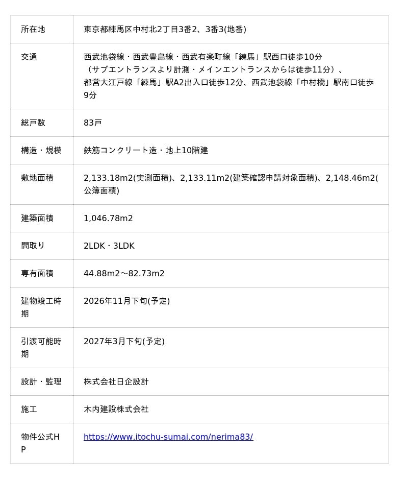 西武池袋線・西武豊島線・西武有楽町線「練馬」駅より徒歩10分※、さらに「中村橋」駅や都営大江戸線「練馬」駅の2駅4路線が利用可能で、池袋・新宿・渋谷など都心の主要駅へ直通でアクセスできる利便性の高さが魅力です。また、本物件は、練馬駅から千川通りの桜並木を抜けた先のスーパーマーケット「LIFE」に隣接しているほか、練馬駅と中村橋駅周辺に広がる複数の商店街も日常使いできる立地のため、生活利便も高いロケーションです。