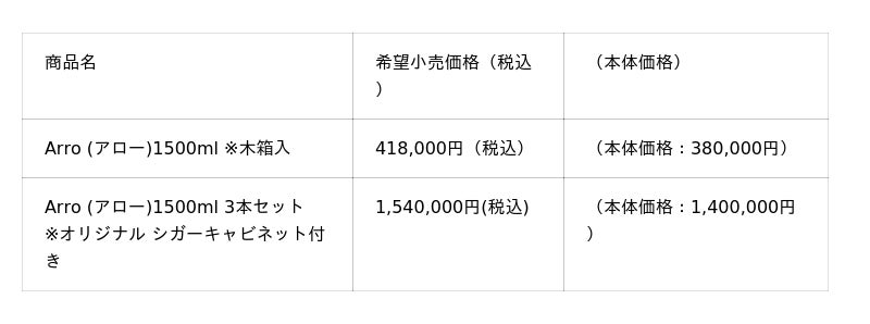 また「Arro 1500ml」 3本を収めたアンリ・ジローオリジナル シガーキャビネット付きのセットも販売。杉に革貼りしたもので、世界で限定13セット、日本へは6セット入荷予定。