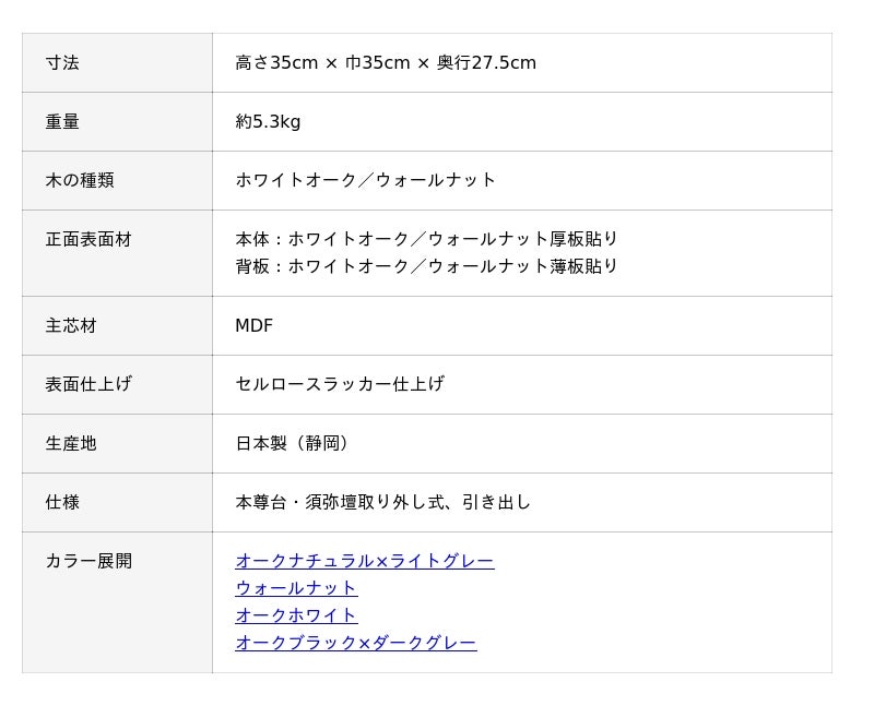 コンパクトながら、内部は「使いやすさにこだわって設計」されており、ご本尊、位牌、仏具をしっかりとお飾りいただけます。本尊台・須弥壇が取り外し式、引き出し付きで、機能性も兼ね備えています。