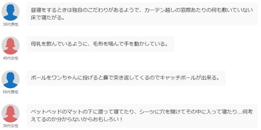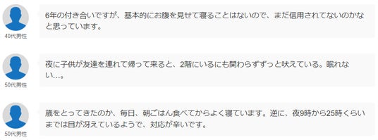 睡眠にまつわる悩みを抱えている飼い主さんも一定数おり、「夜に吠える」「生活リズムが乱れる」などの声が寄せられました。