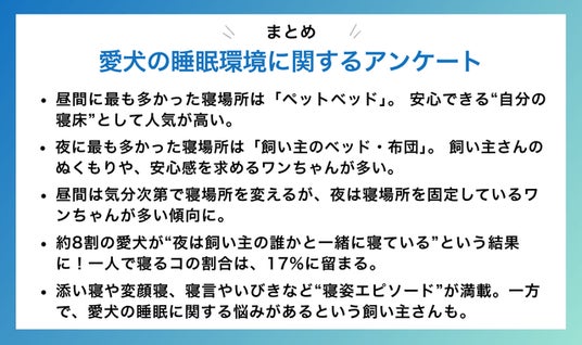 ・第1回:犬の飼い主さん300名に対し、「愛犬の睡眠環境についてのアンケート」を実施。