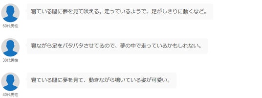 まるで人のような寝息や声に驚いたという声もあり、思わず笑ってしまうような場面も少なくないようです。
