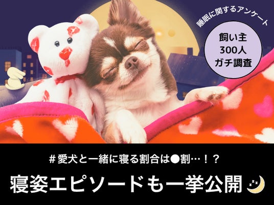 ▼本記事 【300人調査】愛犬と一緒に寝る割合は●割!寝姿エピソードも一挙公開!