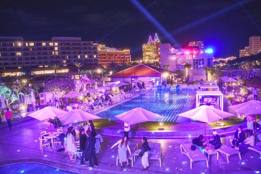 ダブルツリーbyヒルトン沖縄北谷リゾート1階プールサイドエリアと3階にある「43ウェストルーフトップバー」にて開催します。ムービングライトによる華やかな照明演出とDJパフォーマンスが融合し、会場全体を非日常的な空間に仕上げます。また、屋外プールと43ウェストルーフトップバーが外階段でつながっており、DJパフォーマンスを楽しみながら、プールサイドや43ウェストルーフトップバーでゆったりとした時間もお過ごしいただけます。7月26日(土)と8月16日(土)はゲストパフォーマーとして沖縄県読谷村の青年団体「渡慶次青年会」によるエイサー演舞もお楽しみいただけます。