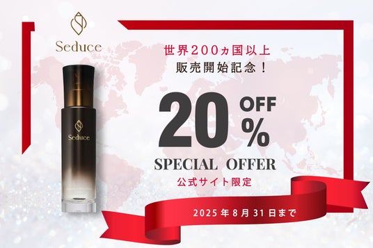 スキンケアブランド「Seduce(セデュース)」は、このたびグローバル通販プラットフォームでの取り扱いを開始し、アメリカ・カナダ・イギリス・ドイツ・フランスなど世界約200ヵ国以上での購入が可能となりました。これを記念し、2025年8月末までの期間限定で、公式オンラインショップにて、「シグネチャーディープモイストローション20%OFFキャンペーン」を開催いたします。