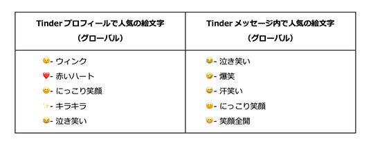 また、2025年にTinder上で世界中のユーザーから最も多く使用された絵文字も明らかになりました(※3)。これらの絵文字は、今なお恋愛における「非公式な共通言語」として定着しており、軽いやり取りやユーモアを交えた会話、そして時には少し誤解を招くようなニュアンスを生み出すなど、多彩なコミュニケーションを支えています。