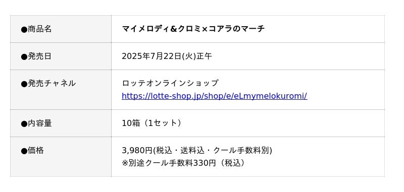 「マイメロディ&クロミ×コアラのマーチ」商品概要