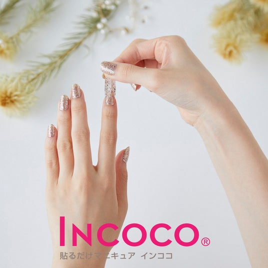 <インココ|INCOCO>インココは、アメリカ発の液体マニキュアから作られたハンド&フット兼用のネイルシートです。ベース・カラー・トップコートが一体化された柔らかいシートは、爪にフィットしやすく、貼るだけでサロン級の仕上がりが実現します。塗る手間や乾かす時間も不要で、除光液で簡単にオフできます。