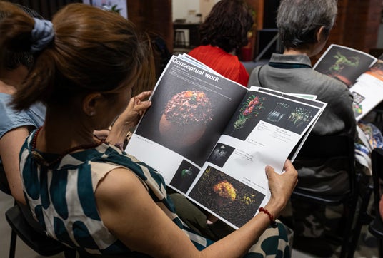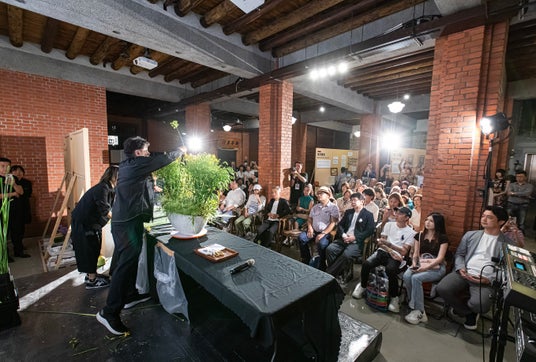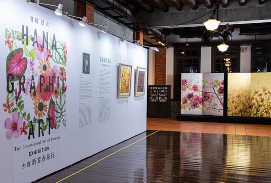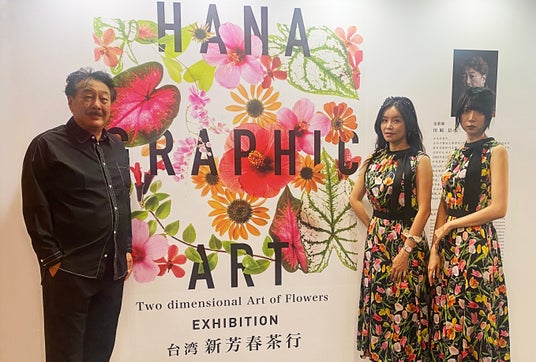 川崎氏と台湾の間には、35年にわたり花を通じて文化交流を行ってきた深い繋がりがあり、この度初めて川崎氏の個展を台湾にて開催する運びとなりました。開催期間中は、「HANA GRAPHIC ART」の数々の作品を展示すると共に、7月4日のレセプションでは、台湾メディアと関係者に向けて、川崎景太による「HANA GRAPHIC ART」への思いや手法についての説明、すでに日本国内において「HANA GRAPHIC ART」とのコラボレーションを行っているビアッジョブルーの商品紹介や、新たなコラボ商品の魅力もご紹介頂きました。