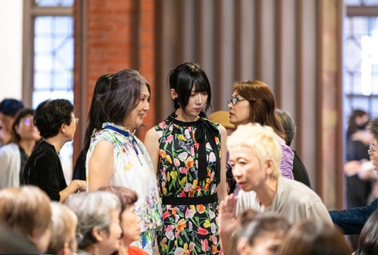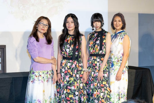 2025 SUMMER COLLECTIONで発表した、HANA GRAPHIC ARTとビアッジョブルーのコラボシリーズ第三弾、土に根付き瑞々しく咲き誇り生きる花々をサテン生地にインクジェットプリントで鮮やかに再現し、花々がまるで花束のように繊細に咲き誇るブラウス&スカート、多色のチューリップを使用したワンピースを、台湾メディアと関係者に向けてご紹介頂きました。