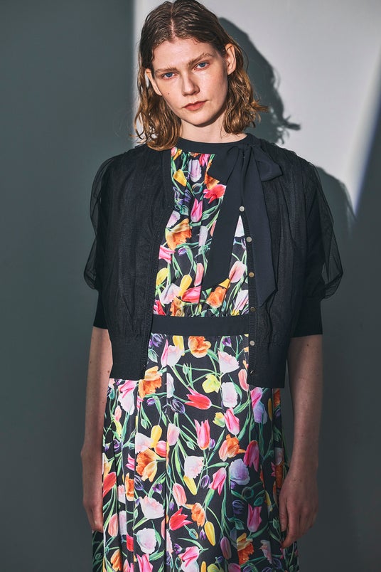 ブーケ柄のブラウス¥31,900 スカート¥36,300 チューリップ柄のワンピース¥57,200