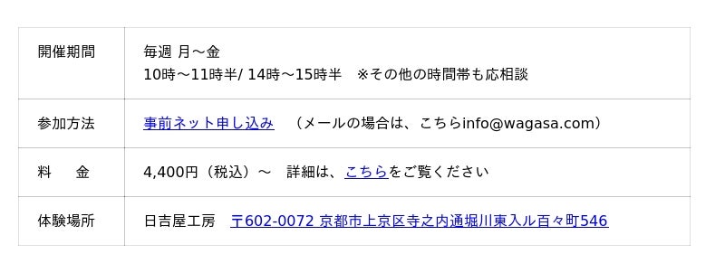 京都で五代160年以上にわたり和傘づくりを続ける京和傘・日吉屋がおくる「工房体験」のご案内です!