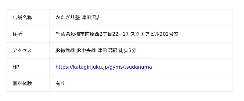 ▶︎https://katagirijuku.jp/gyms/tsudanuma