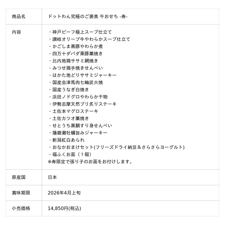 ◆「ドットわん究極のご褒美 午おせち -寿-」商品ページ