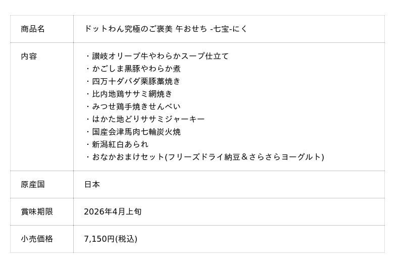 【ドットわん究極のご褒美 午おせち -七宝-にく】