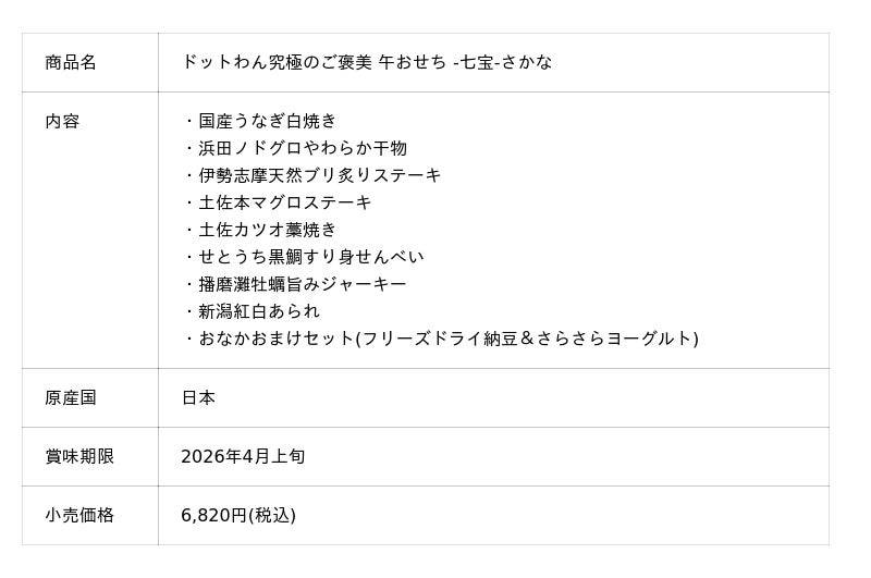 ◆「ドットわん究極のご褒美 午おせち -七宝-さかな」商品ページ