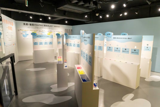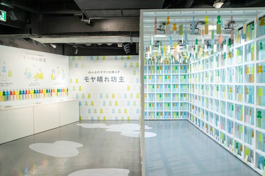 1・2Fでの体験を通じて顕在化した“モヤモヤ”を言葉にして吊るす展示「モヤ晴れ坊主」では、来場者の“モヤモヤ”を晴らしました。本エリアは、来場者が自身の中に残る“すれ違い”や“ひっかかり”を可視化することで、感情を整理し、前向きな気持ちでイベントを締めくくる設計となっています。吊るされた“モヤモヤ”の中には、「何でもいいって言うくせに、提案したら否定してくるのは何?」や「そこはセンスで!って言うけど、言語化できず逃げているだけでは?」など、世代や立場に対する一般的なイメージとは異なる、意外な本音も垣間見えました。またエリア内には、メディア向け説明会に登壇したお笑い芸人のゆりやんレトリィバァさんと平成ノブシコブシ・吉村崇さんが吊るした「モヤ晴れ坊主」も特別展示。Z世代の部下・後輩世代を代弁したゆりやんさんは「ダメなことはダメと言ってください。」、一方で上司・先輩世代を代表した吉村さんは「もう下の若い世代でルールを固めてもって来てほしい。」と、それぞれの立場を象徴する “モヤモヤ”を言語化し、各世代の相互理解のきっかけとなりました。