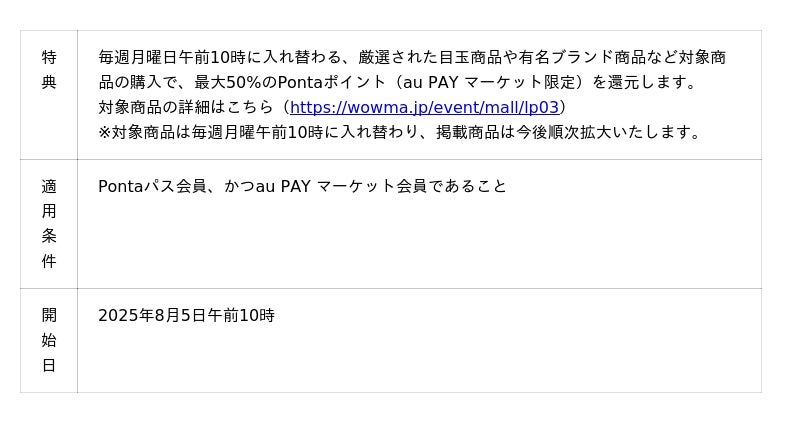 「Pontaパス ポイントUPセレクト」https://wowma.jp/event/mall/lp03