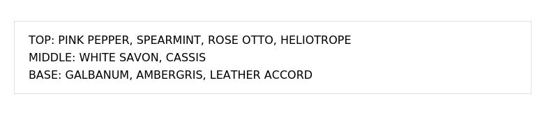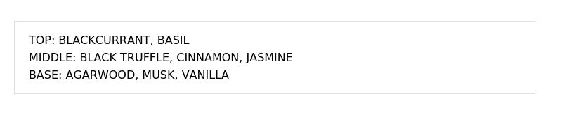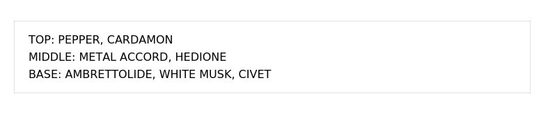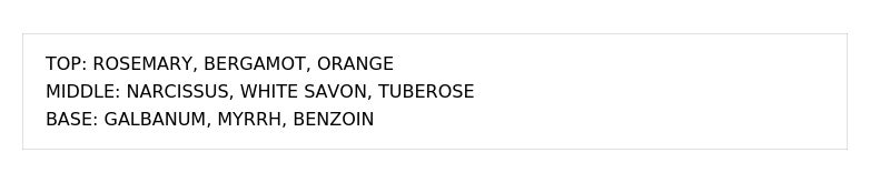 バジルと柑橘の明るさに、ビターなエッジとウードの深みを加えた、洗練された調和のレイヤード。柑橘の明るさにスパイスとウッドの深みを重ね、軽やかさと落ち着きが共存する洗練された印象の香りに。