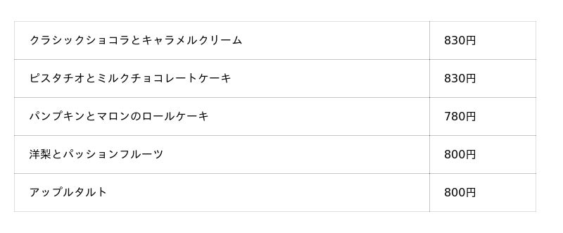 スイーツメニュー / イメージ