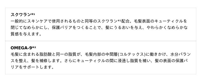 *² OMEGA-9(オレイン酸:毛髪保護成分)