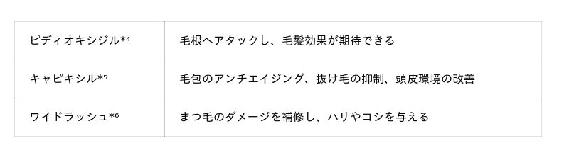 さらに、ピディオキシジル*⁴・キャピキシル*⁵・ワイドラッシュ*⁶の3つの機能性成分がまつ毛の美しさをサイクルごとにサポートし、ハリ・コシ・密度感を底上げします。