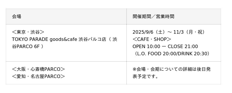 詳細は後日PARCO FACTORY公式サイトよりご案内いたします。