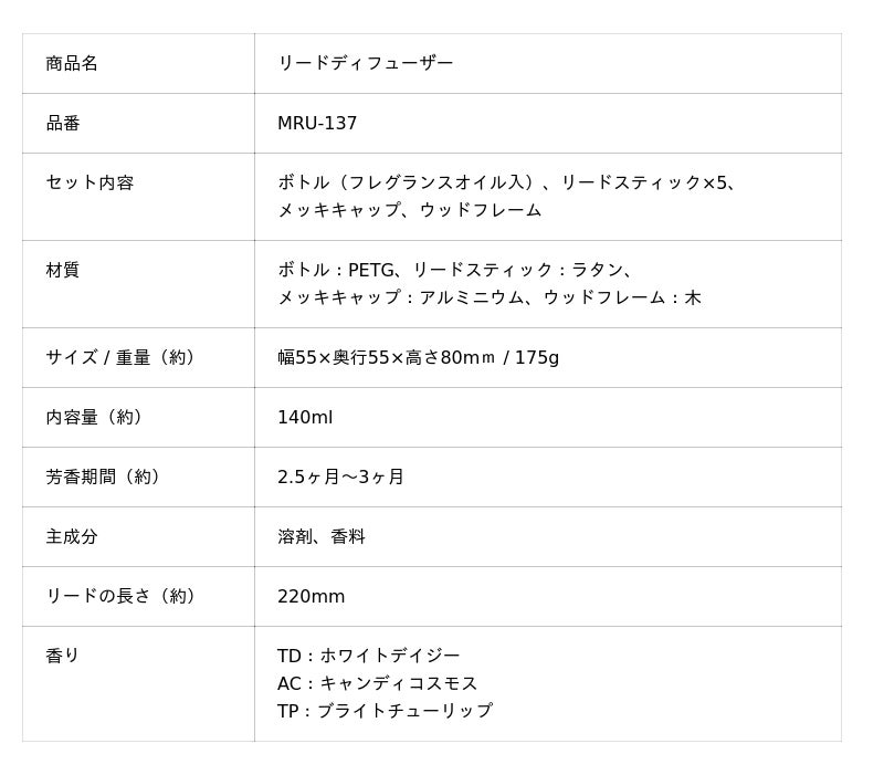 「リードディフューザー」 MRU-137