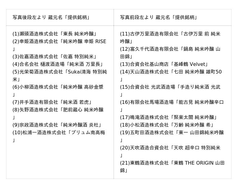 佐賀酒 提供銘柄について