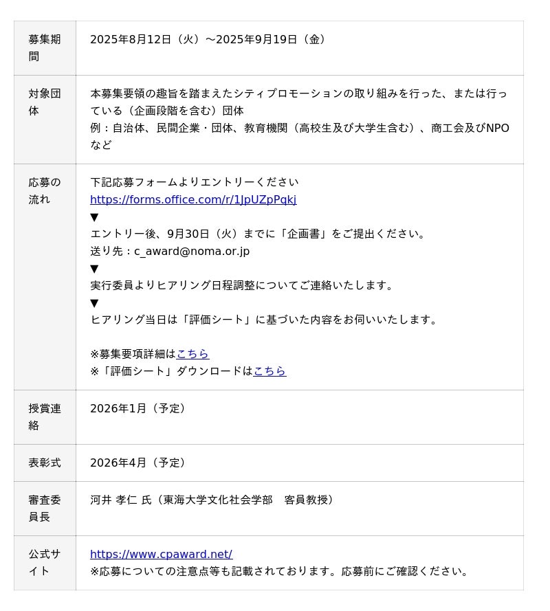 Tel: 03-6632-7134 / Mail: c_award@noma.or.jp