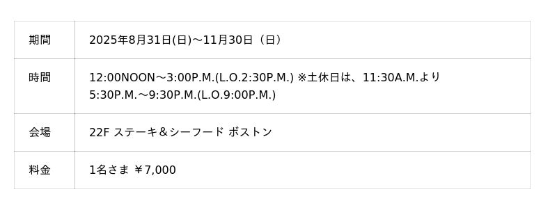 空と海に囲まれたリゾート「グランドプリンスホテル広島」(所在地:広島市南区元宇品町23-1、総支配人:平瀬 春男)は、2025年8月31日(日)~11月30日(日)、22階のレストラン「ステーキ&シーフード ボストン」にて、野菜ソムリエ監修コース「シェフズ・ガーデン」を提供いたします。