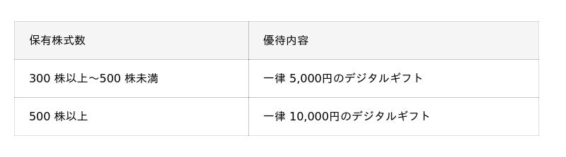 8月末日現在の当社株主名簿に記載または記録された、当社株式300株(3単元)以上を保有する株主様(保有期間を問わず)を対象といたします。なお、2026年8月期以降、株主優待を継続実施する場合は、「継続して1年以上保有」を条件※とする予定です。