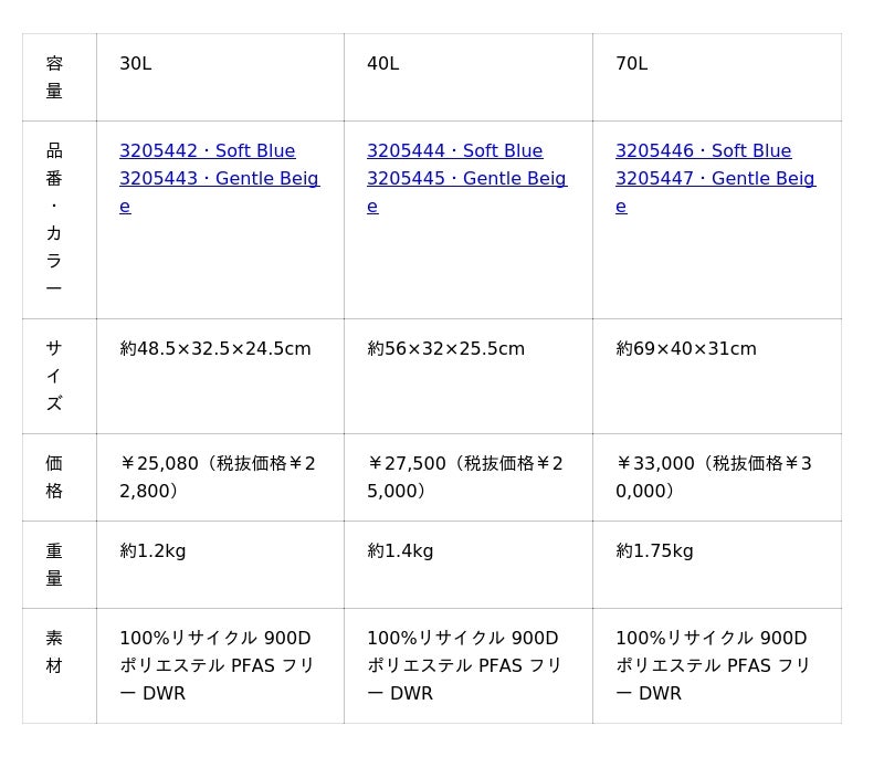 上から、30L・40L・70L