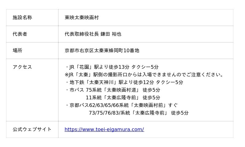 ※雨天決行、荒天中止。中止の場合、映画村公式ウェブサイトにて案内がご