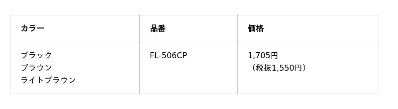 カラーはブラック、ブラウン、ライトブラウンの3色。メーカー希望小売価格(税込)は、1,705円です。