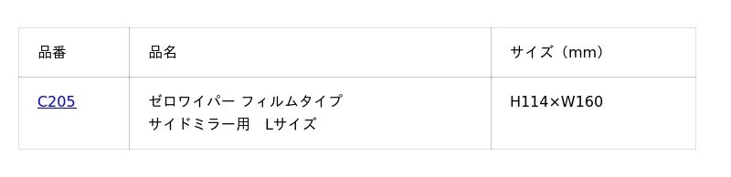 画像の製品は「ゼロワイパー フィルムタイプ サイドミラー用 Lサイズ(C205)」