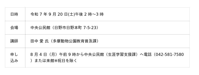本講座では、多摩動物公園の方から、動物たちや園内の見どころなどについてお話いただ