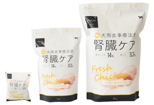以前からオリジナルの栄養補完食やオヤツ、サプリメントなどの商材を豊富に取り揃えていましたが、2016年から、「もっと犬の食事を楽しいものにしたい」という思いからオリジナル総合栄養食の展開を開始。日本国内では、犬の個性に合わせて毎日のトッピングを楽しめる総合栄養食「POCHI ザ・ドッグフード」シリーズの発売を皮切りに、2020年に3歳から始めるシニアフード「POCHI ザ・ドッグフード『エイジングケア』」シリーズを発売、2023年にはスーパープレミアム品質の療法食「POCHI犬用食事療法食 腎臓ケア フレッシュチキン」を新発売しました。
