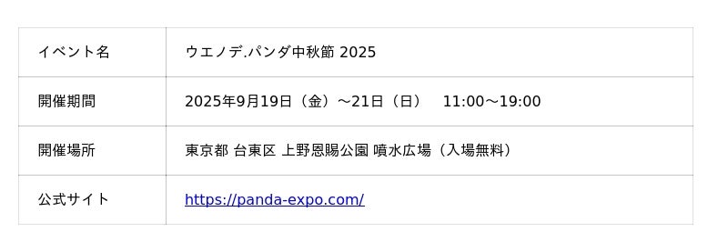 ぜひご家族やご友人とともに、「チャイナフェスティバル2025」「ウエノデ.パンダ中秋節 2025」の大東北のブースにお越しください。