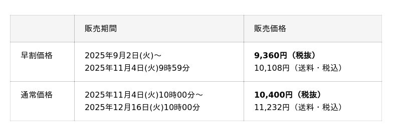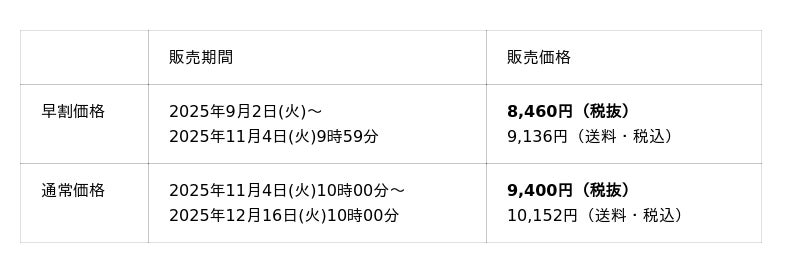 予約期間:2025年9月2日(火)~12月16日(火)10:00まで※売り切れ次第終了