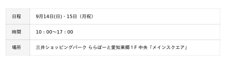 (日時)9月14日(日)・15日(月祝) 10:00~17:00