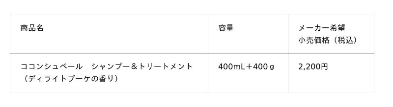今回発売する「ココンシュペール ディライトブーケの香り」は、華やかでリッチなフローラルブーケをメインに、フルーティやシトラスの明るいアクセントを添え、特別感のある印象を持たせた限定香調のシャンプー&トリートメントです。