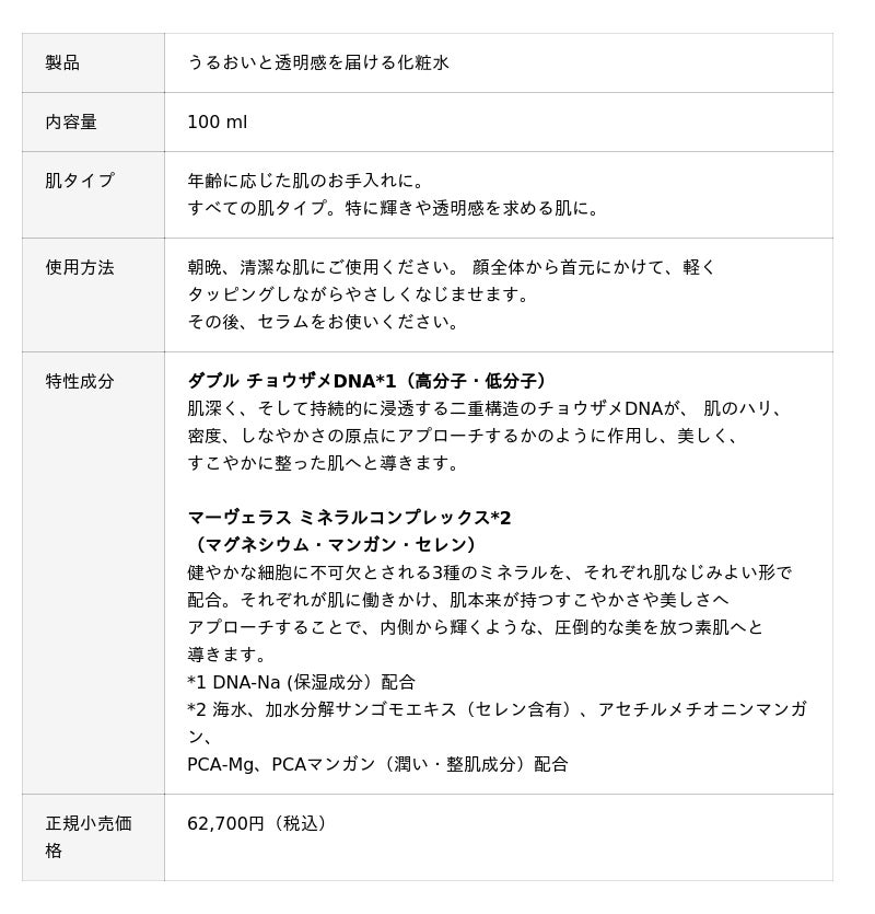 ミネラルをたっぷり補給し、肌環境をすこやかに整えます肌の輝きを引き出し、明るい印象へ。